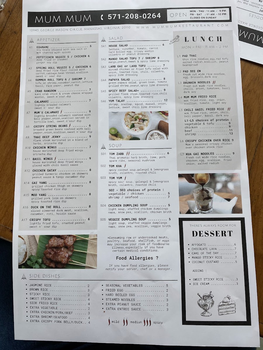 If you're seeking an authentic flavor of Thailand in the heart of Manassas, look no further than Mum Mum Restaurant. Nestled at 10945 George Mason Cir, this delightful Thai eatery promises to enchant your taste buds with a delightful array of dishes, all expertly crafted to bring the warmth and essence of Thai cuisine to your table.